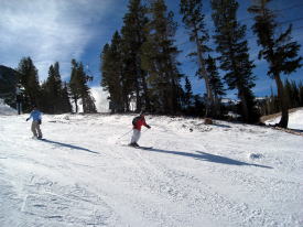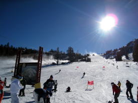 ゲレンデに出ると、昨日人口雪を作っていたサンダーバウンドのリフトが動いていて、その下のコースが滑られようになっている。早速滑ってみると途中に少しアイシーなところがあるがこのコースは短いが全般に良い状態である。